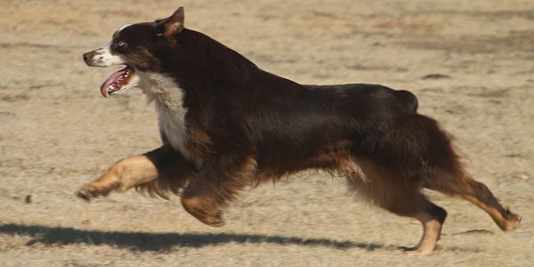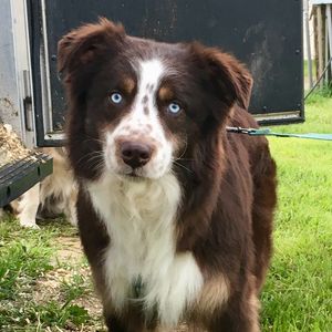 Indigo is a deep red tri male that loves love. He's a cuddler with low drive. He's more of a watch dog type that will lay at the front of the barn all day long. He "smiles" and many of his puppies smile as well.